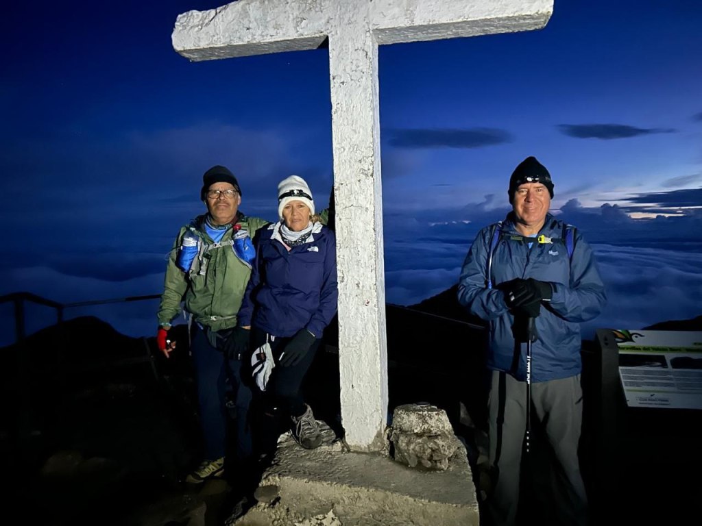 Y entonces, poco después de las 5:30 a. m., la última persona del grupo llegó a la cima. Lo habían logrado. Frente a ellos, un amanecer majestuoso comenzó a pintar el cielo de tonos naranjas y rosados, revelando el paisaje que hasta entonces solo imaginaban: montañas dormidas bajo nubes, el Pacífico y el Atlántico a la distancia, y el eco silencioso del esfuerzo convertido en logro.