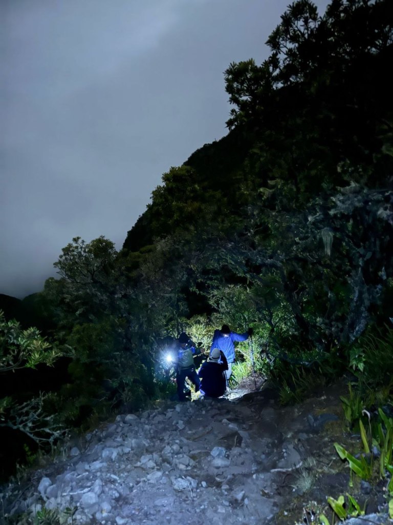 A las 8:30 de la noche, Jorge López, guía y fundador de BaruExpedition, se reunió con el equipo y juntos partieron hacia la entrada del parque nacional. Allí, firmaron el registro en la caseta de control, verificaron el equipo, ajustaron mochilas, y con linternas encendidas y corazones latiendo con emoción, ingresaron al sendero.